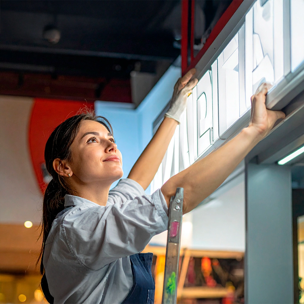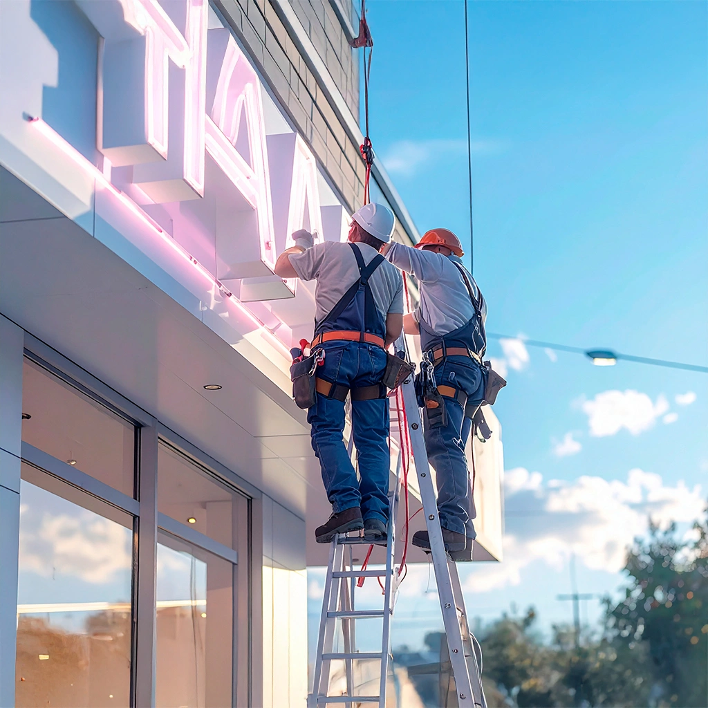 Ci occupiamo di ogni fase del processo: dal sopralluogo alla progettazione grafica e strutturale, fino alla realizzazione in laboratorio e al montaggio in loco. Seguiamo con cura ogni dettaglio, utilizzando materiali di qualità e tecnologie avanzate, per garantire un risultato sicuro, duraturo e perfettamente integrato con l’immagine del tuo brand.